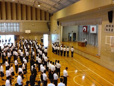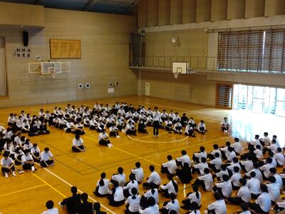 明日、5/27(土)から始まる高校総体(先行試合)・総文祭、6/10(土)、11(日)に開催される高校生ものづくりコンテストの各大会に向けた選手壮行会が行われました。出場される選手のみなさん、それぞれの大会で頑張ってください。