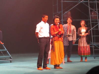 素晴らしい歌声や衣装、さまざまな登場人物など大変豪華な演劇でした。途中、本校生徒もステージに上がる場面もあり、会場は大盛り上がりでした。「若さ」とは「自由」とはなどいろいろなセリフで私たちに問いかけてくる場面も多く、大いに刺激になりました。