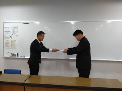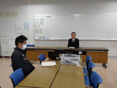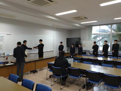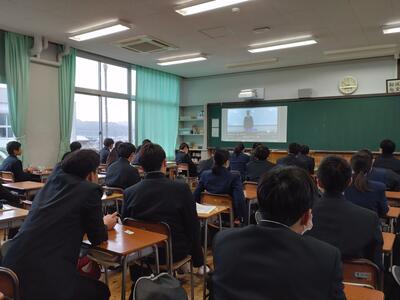 表彰式と2学期終業式が行われました。本日は寒波のためオンラインでの式典となりました。