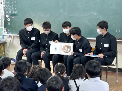 12月20日(水)に旧本渡市内の小学校を訪問して、天工生による小学生への読み聞かせを行いました。