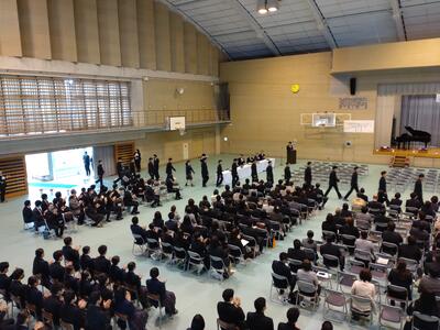 本日、令和5年度第59回卒業証書授与式が行われました。本年度より新型コロナウイルス流行前の式典に戻り、来賓、保護者、在校生に迎えられ151名の卒業生が卒業証書を手にしました。