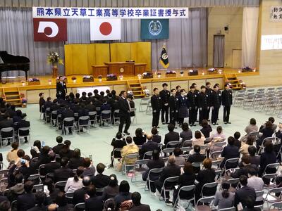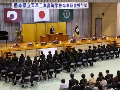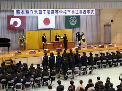 校訓「温厚・誠実・勤勉」を胸に天草工業高校卒業生としての自信と誇りを持ち、❝ Discover Your Next Level -もう一歩踏み出す- ❞のもと、これからの成長と活躍を期待します。未来に幸多かれ。卒業おめでとう。