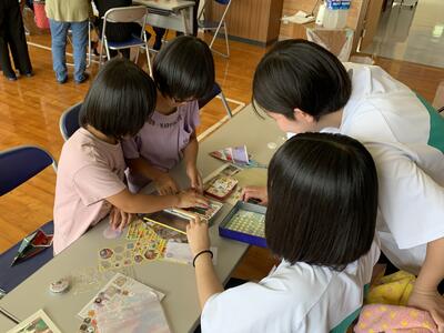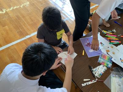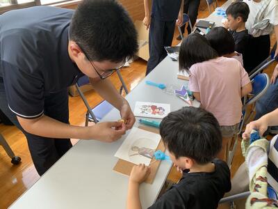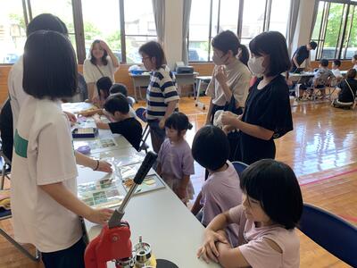7月6日(土)佐伊津地区コミュニティセンターにて、明瀬地区子ども会のワークショップ(ものづくり体験会)に本校生徒が参加しました。