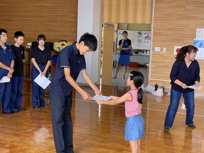 閉会式では、製作支援を行った本校生徒に向けて、児童一人ひとりが感謝状を渡してくれました。今後も、地域と学校をつなぐ取り組みをしてまいりたいと思います。本日はありがとうございました。