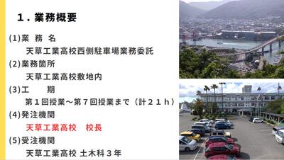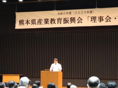 県内工業高校、また天草工業高校の代表として土木科3年生の髙田君が「測量という仕事を学び、地図をつくる実習体験」と題して、熊本県産業教育振興会総会にて専門高校生による生徒意見発表を行いました。多くの方々の前での発表で緊張もありましたが、それ以上に貴重な経験と大きな自信を得ることができました。