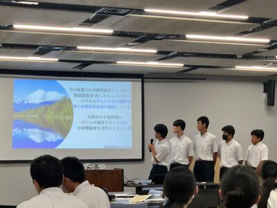 それぞれの班で自分たちのビジネスプランを発表し、講師の先生方からアドバイスをいただいていた。中には厳しい指摘をする場面もあり、ほどよい緊張感の中発表が行われていました。午後からはフィールドワークとして、班ごとに分かれ、ビジネスプランに関係する企業や行政機関の方々と話をしたり、現場を実際に見に行くなどして、プランの内容をさらに充実させていました。