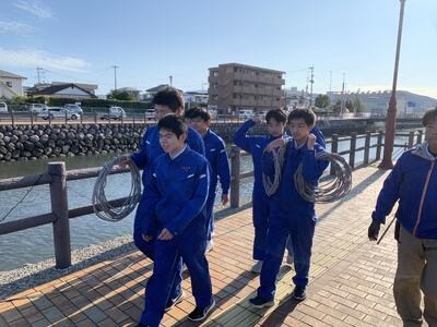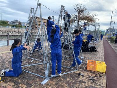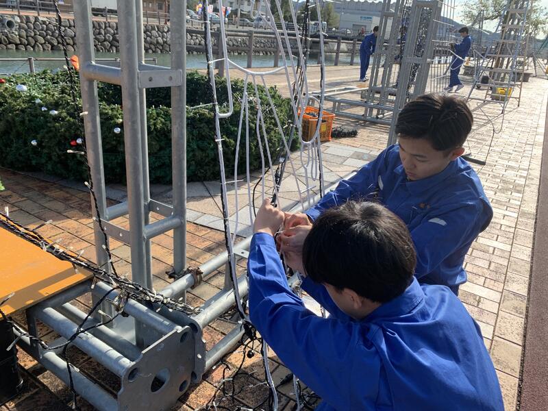 11月20日(水)電気科2年生を対象に天草電気工事業協同組合様と一緒に市役所裏のプロムナードにて、イルミネーションの設置作業を行いました。