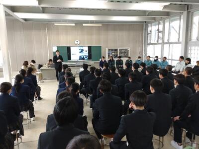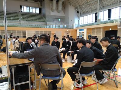 本日、機械・電気・土木科の2年生が合同企業説明会に参加しました。地域産業を担われる企業の方々との対話をとおして地域産業を知り、新たな発見から郷土に対する愛着も深まりました。またコミュニケーションスキルの向上にもながり、今後の進路活動の一助となりました。