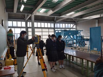 12月4日(水)、11日(水)、18日(水)の3日間、土木科1・2年生が測量設計コンサルタント企業様より測量設計に関する講義を実施していただきました。測量設計に関する内容を知り、「仕事」について学ぶ機会となりました。また、最新の機器に触れさせていただいたことで技術の進歩による感動と驚きもあり、興味・関心が深まりました。