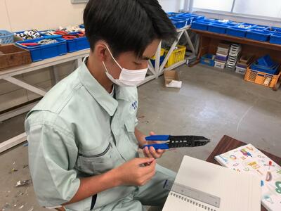 半田ごてを使ってテスタ製作キットを完成させます。中学校でも半田付けを行っていた様で、半田付けが上手な生徒ばかりでした。