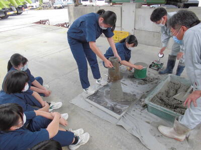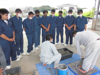 本日、土木科2年生が建設機械およびコンクリート製造工程の見学に行きました。普段見ることのできない建設機械を間近で見ることができ、機械の構造や性能についても知ることができました。また、コンクリートのスランプ試験や空気量測定試験を体験することで、専門知識を高めることができました。今後の資格試験や進路選択に生かしていきたいと思います。