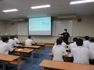 機械・土木科3年生(機械:7人、土木:6人)がドローンについて、外部講師(株式会社「岳」:代表取締役 荒木圭一 氏)による講義を実施していただきました。本日は基礎講座2回目で、航空法、電波法について学習しました。また、飛行状況や空撮の様子も見せていただくことができ、操作についても興味を持ちました。次回の講義は7月7日(木)に実施していただきます。