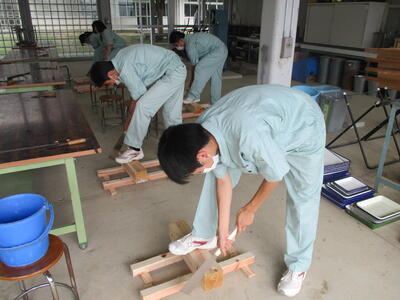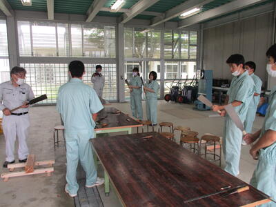 土木科の3年生(6人)が伝統技術の継承、若手技術者の育成について、外部講師(有限会社 原田工務店:代表取締役 原田 良 氏)による講義、実技指導を実施していただきました。本日は1回目で、安全管理および工具の扱い方について学習しました。次回の講義、指導は6月23日(木)に実施していただきます。