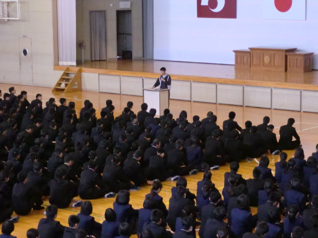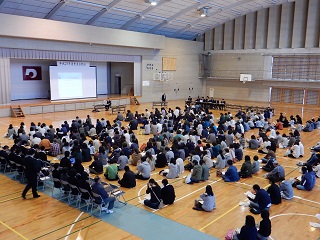 昨夜の地震の影響で、本日の遠足は中止になりました。まだまだ余震の心配も続いているということで全校集会が開かれ、北野先生から災害時の対応方法などについて話していただきました。スマートフォンのアプリで地震が起こることを知った方や防災メールで地震が起こったことを知った方もいらっしゃるかと思いますが、そういった備えも大切だと感じた今回の地震だったのではないかと思います。油断することなく備えておくことが必要です。
