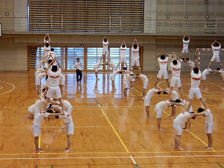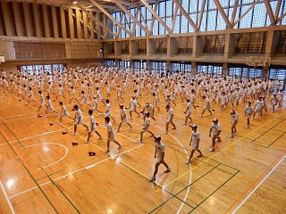 本日から1年生も体育大会の練習が始まりました!2限目の授業では2年生と一緒に練習となりました。体育館という限られたスペースの中で練習が行われるため、2年生が1年生に見本をみせながらという形で行われていました。最後には2年生のエッサッサの練習も行われました。まだまだ練習は必要なようです(^^;)現在は3限目の授業が行われており、1年生と3年生が練習を行っています。