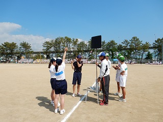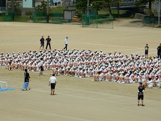 午前中に体育大会総予行を行いました。プログラム順に競技の流れや移動場所、各係の役割の確認などを行いました。雨でなかなか練習ができていない学年競技などは本番同様に競技が行われました。結果は・・・明日を楽しみにしていてください。(^_-)