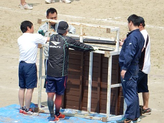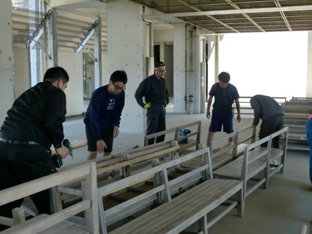 グラウンドの指令台の天板が痛んでいましたが、土木科の先生方に新しい天板を作っていただき、つけかえていただきました。\(^0^)/