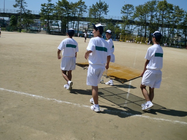 本日は快晴です!グラウンドもなんとか使用できる状態になりました!!先ほど体育大会に使用する団席の運搬を1年生が行いました。