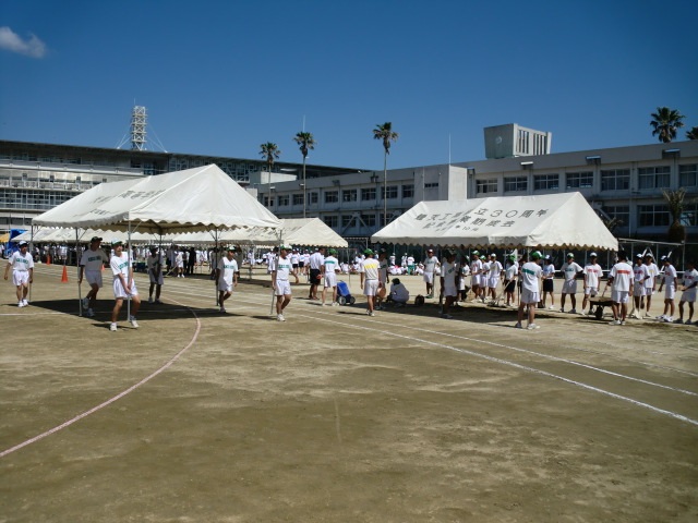 さて、この地震の影響が残っていることもあり、本年度の体育大会の在り方につきまして慎重に検討を重ねて参りました。天草地区の影響が比較的少なかったことや本校の生徒の活動の様子や学習の成果をご覧いただきたいという思い、そして何より体育大会の成功を目指して頑張る姿を見せることで、被災された方々にその心意気が届き、復興に向けての元気につながると信じて、例年通り実施することとしました。