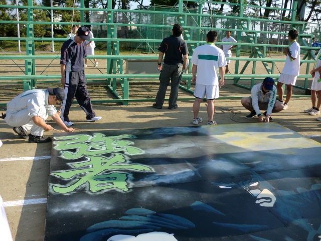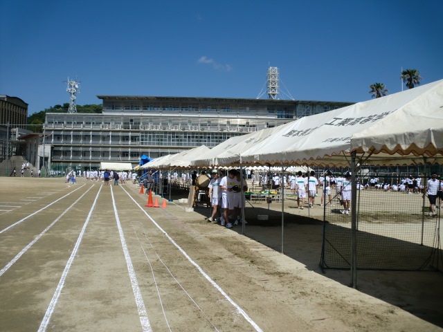 各団とも競技中には応援を頑張っています。各団ともそれぞれ応援歌などを工夫しているようです。そういった面も明日見ていただければと思います。 また、今年度は今までになかった新競技も実施されます。工業高校らしい競技になっていると思います。どういった競技なのか!?それも明日確認してください。m(_ _)m