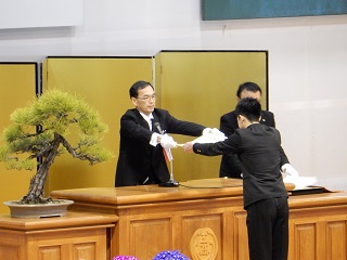3年生の担任の先生方から一人一人名前を呼ばれて起立し、クラスの代表者が卒業証書を校長先生より受け取りました。