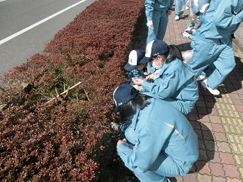 1年生は卒業式に参加しませんが、これまでお世話になった先輩方を送り出すために、学校周辺のゴミ拾い等を行いました。