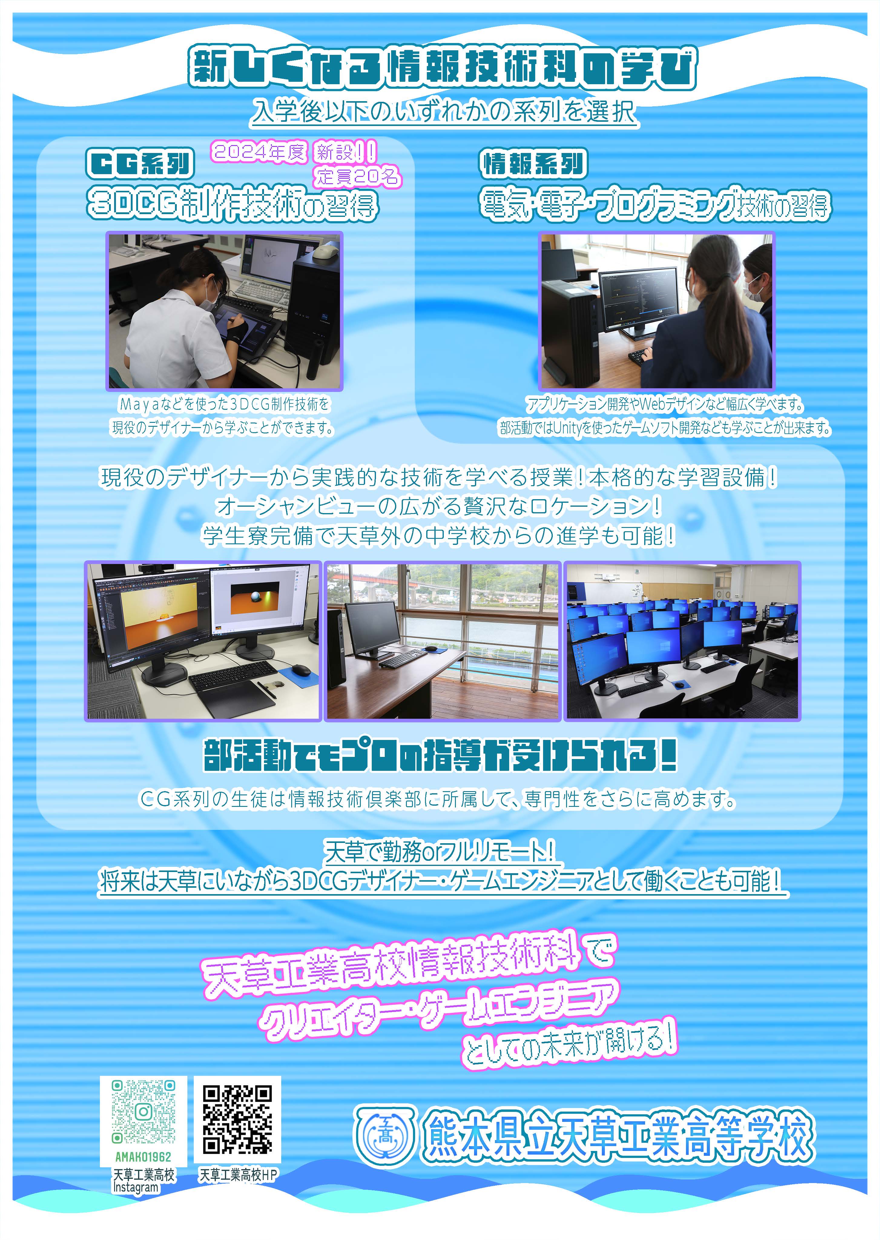【情報技術科】令和6年度より情報技術科にCG系列が新設!!