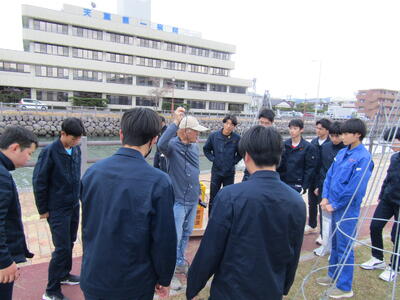 午後の部では、建柱車の取り扱いなどの体験もできて、生徒たちも真剣に楽しみながら学習ができたと感じます。
