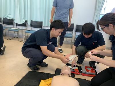 講義では、胸部圧迫(いわゆる心臓マッサージ)やAEDを用いた救命救急処置をすることで、蘇生の確率を高くできたり、蘇生後の脳へのダメージを少なくすることができるなどの説明があり、救命救急処置の重要性を学ぶことができました。