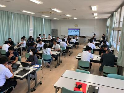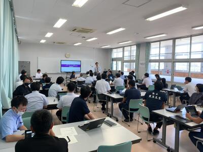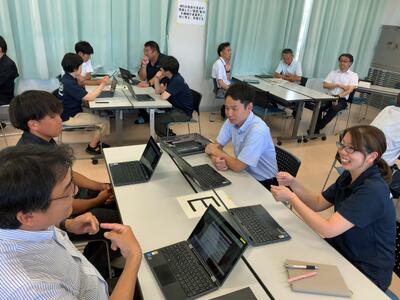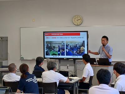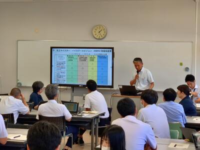 本校は、マイスター・ハイスクール事業における拠点校として、色々な企業と連携した授業を展開しております。この研修では、この事業の趣旨や学校ビジョンを全教職員で共通認識を図るとともに、地域や 産業界と繋がって学ぶ意義について理解を深めることを目的として開かれました。