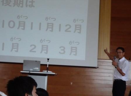 9月30日(火)に前期終業式があり、秋休みを挟んで10月6日(月)、後期始業式を行いました。後期は現学年のまとめの時期であるとともに、次の学年へ向けた準備の時期でもあります。