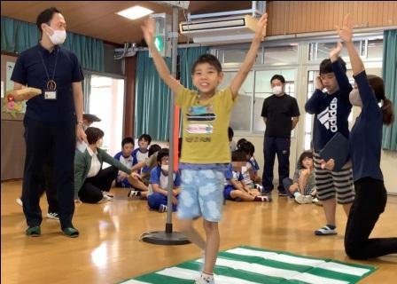 グループに分かれて自己紹介を行ったあと、絵合わせゲームやボール運びリレーに取り組みました。最初は緊張していた子ども達でしたが、しばらくすると名前を呼んで協力し合って活動し、帰りには別れを惜しむ姿が見られました。が溢れる、楽しく素敵な交流ができました。