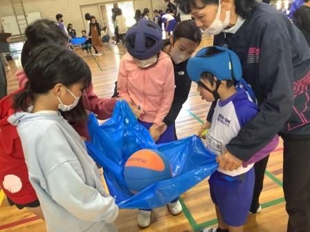 四中生が準備した魚釣りゲーム、ジェスチャーゲーム、ボウリング、ボッチャはどれも大いに盛り上がりました。また、帰る際には、本校生徒の名前を呼びながら手を振って見送る四中生の姿もありました。本校生徒からは「また行きたい!」「ボッチャで活躍できた」などの声も聞かれ、充実した交流になりました。