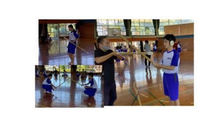 保健体育で剣道に取り組みました。黙想、座礼、足さばきや竹刀さばきなど基本的な動きを学習しました。回を重ねるごとに、動きがスムーズになり、「めーん」の掛け声が体育館に響きました。「楽しかった」「がんばった」と笑顔でした