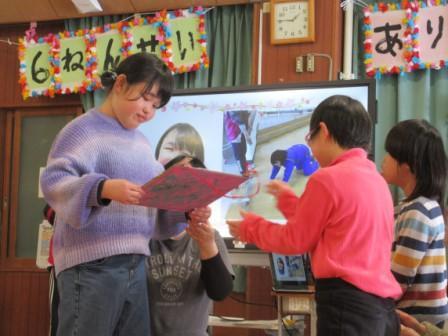 小学部一般学級では11日(火)、「6年生ありがとう会」を催しました。14日(金)に卒業式を迎える6年生へ、これまでの感謝を伝える会です。当日は在校生から感謝状と手作りのプレゼントが一人一人に手渡されました。6年生から「あいさつ看板」のプレゼントがありました。在校生は6年生との最後の時間を大切な思い出にすることができたと思います。