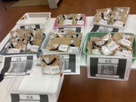 3年生から1年生へ工程を分担して「サシェ」を作りあげることができました。