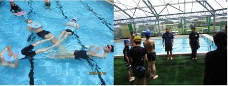 保健体育で水泳に取り組んでいます。暑い日が続き、生徒たちも楽しく学習に参加することができています。授業では、水辺の事故を防ぐために必要な知識を学び、生徒からは「事故に合わないためにルールを守る」といった発言が聞かれました。ボランティア共生大学の皆様の見守りもあり、安心・安全に学習に取り組むことができています。ボランティア共生大学の皆様、ありがとうございます。