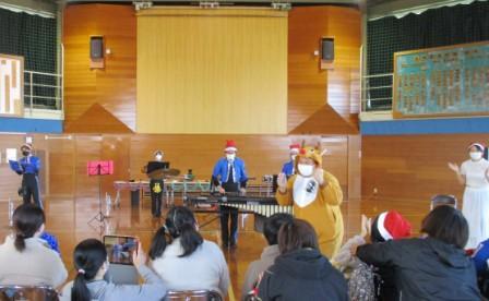 12月5日(火)に音楽の授業でスクールコンサートを行いました。マーチングバンド「FIRE STATE Brass & Percussion Corps」のみなさんに、素晴らしい演奏と楽しいパフォーマンスを披露していただきました。子どもたちは楽しそうに笑顔になったり、一緒に体を揺らしたりして音楽を感じていました。演奏の後はマーチングバンドのみなさんに楽器を紹介してもらい、実際に音を鳴らす体験もすることができました。子どもたちにとって心に残るとても楽しい時間になりました。