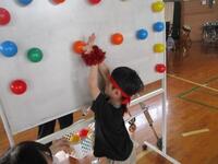 | 看板の文字を一人1文字ずつ塗りました☆ | 教室でも競技の自主練習に力が入ります♪ | みんな~!今から運動会が始まるよ~! | バルーンを使ったダンスは楽しかったね♪ |