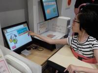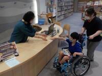 | 受付の人のところに行き、自分で本やカードを受け渡しして借りることができました♪ |