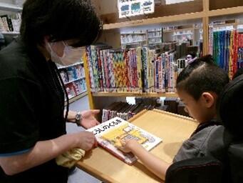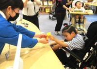 9月13日(金)に、ゆめタウンシティーモール内にある荒尾市立図書館へ出かけました。バスや福祉タクシーの中でもワクワクして、子どもたちも教師も笑顔いっぱいでした。バスや福祉タクシーを降りた後は一路図書館へ向かいました。たくさんの本の中から自分でお気に入りの本を選び、カウンターではカードや本を手渡して自分で本を借りました。本を借りた後はお話会があり、子どもたちはみんな、面白くて絵本に目がくぎ付けでした。借りた本は学校に持ち帰り、ゆっくり味わって読みました。