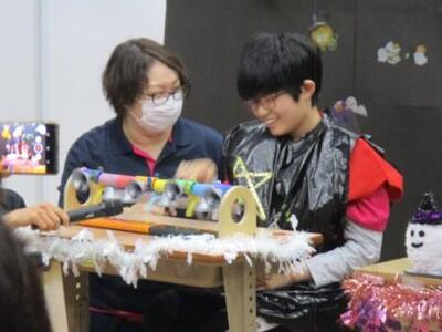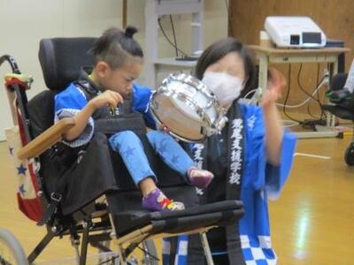 10月19日(金)に、ARACYO発表会と題して、重複障がい学級の音楽発表会を行いました。自分たちの得意な音楽の表現方法を見つけ、それを生かして発表を行いました。「DRUMRAO」は「叩く」楽器のグループです。北島三郎の「まつり」に合わせ迫力ある太鼓演奏を行いました。「Let’s Allaween」は「鳴らす」楽器のグループです。鈴やハンドベルなどの楽器を鳴らすことで1人ずつ魔法をかけていき、会場の準備が整うと全員でハロウィーンパーティーを開催しました。「This is me」グループは「身体表現」のグループです。ダンスやフラフープ、バランスボールなど様々な方法で音楽を表現し、ショーを成功させることができました。最後はマツケンサンバⅡで保護者の方も一緒に盛り上がりました。一人一人のよさを生かし、とても楽しい発表会になりました。多くの保護者の方にも御参観いただき、ありがとうございました。