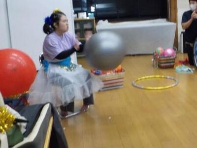 音楽に合わせてバランスボールで キャッチボールしました☆ |