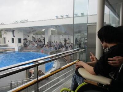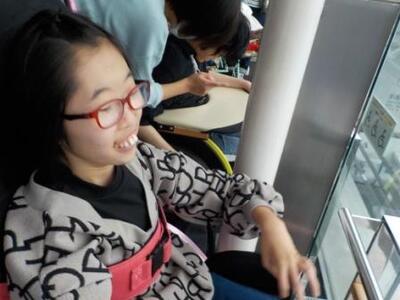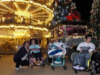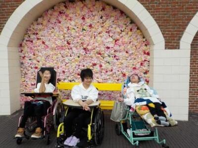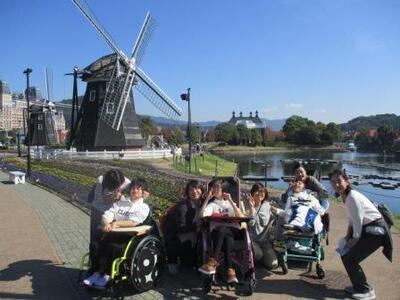 11月5日(日)、6日(月)に、重複障がい学級の高等部3年生が修学旅行に行きました。学校からリフト付き大型バスに乗り、1日目は佐世保市のハウステンボスに行きました。まるで外国にやってきたかのようなきれいな街並みや色とりどりの花を見たり、アトラクションを楽しんだりしました。夜はイルミネーションを見に行きました。たくさんの光や音を感じて生徒たちは目を輝かせていました。