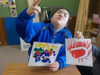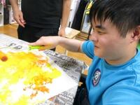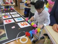 卒業制作の文字カードをそれぞれの得意な方法でつくりました♪ 絵の具やお花紙でカラフルなカードができました! |