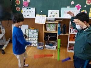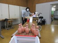 | 紙粘土のパーツを貼り付けて教室表示のプレートを作りました★ | 「やったあ!ピンが倒れたぞ!」ボウリングはとても盛り上がりました♪ | ||