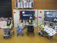 重複障がい学級では、2月22日(木)に「卒業おめでとうパーティー」を行いました。単元期間中、在校生は卒業生に対する感謝の気持ちを込めてブーケやお祝いメッセージなどのプレゼント制作や会場装飾に取り組みました。卒業生は在校生への感謝の気持ちを込め、記念品として教室表示のプレートを製作しました。別日には、在校生と卒業生が一緒にボウリングを行い、楽しい思い出ができました。卒業おめでとうパーティー当日は思い出ムービーの上映や卒業生・保護者それぞれからの一言、プレゼント交換などがあり、児童生徒それぞれの役割を持って取り組みました。卒業生の思い出を振り返り、思いを伝え合って心温まる時間となりました。保護者のみなさまには御参観と祝福の言葉などありがとうございました。