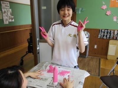 | 在校生は一人一人の書いた文字を貼り付け、会場装飾の看板をつくりました★ | 大好きな先輩へのメッセージ、どう書こうかな♪ | 粘土の型抜き、楽しいなあ! | |
