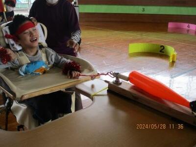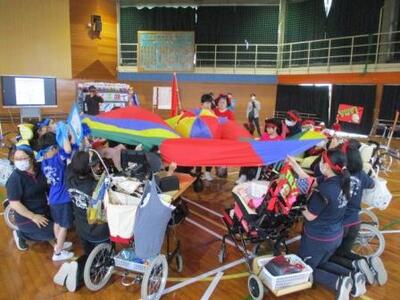 今年度の重複障がい学級運動会は「楽しく笑顔でやってみよう」をテーマに取り組みました。