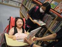 6月16日(金)に、ゆめタウンシティモール内にある荒尾市立図書館へ出かけました。みんなバスから窓の外を見たり、おしゃべりしたり、ウキウキがかくせません。バスを降りると、ウィンドウショッピングを楽しみながら図書館へ。たくさんの本の中からお気に入りの本を選んで、自分で借りました。本を借りた後は、図書館の職員さんによる読み聞かせがありました。思わず物語の世界に引き込まれて、とっても楽しい時間でした。借りた本は学校に持って帰り、ゆっくりと楽しみながら読んでいる姿が見られました。